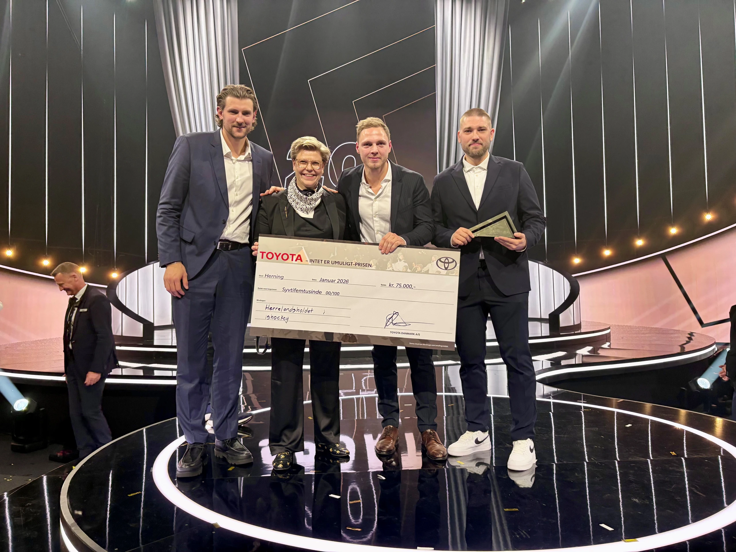 Tre kompetente kandidater kæmpede lørdag aften om Toyotas Intet er umuligt-pris ved det årlige sportsshow, Sport 2025, i Boxen i Herning. Men kun en af de tre kunne løfte den ærefulde pris på scenen. Det blev de danske ishockeyherrer, der sikrede sig den store hæder og nu kan kalde sig vinder af årets mest umulige sportspris i 2025.