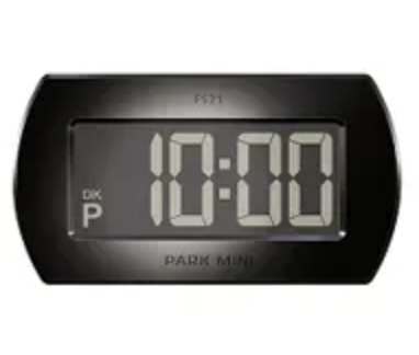 PARK MINI er verdens mindste elektroniske parkeringsskive, den fylder ikke ret meget i ruden, men er let at aflæse med sine store digitale tal.